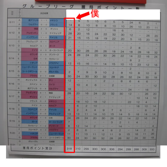 (優勝の可能性が大きいと思う国に大きなptを振り分け)