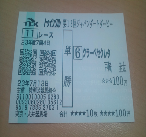 注:グレープブランデーの単勝馬券が2枚ある(左画像)のは買い足したからで、、、僕の欲望全開の象徴(¥ー¥)