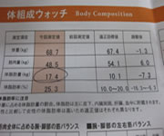 何がキツイって、体重計みたいなのに乗って、さらに両手にハンドルみたいなものを握る測定器にを使うんだけれど、自分の<脂肪量>とか<体重>とかがデジタル表記されていくの。。。