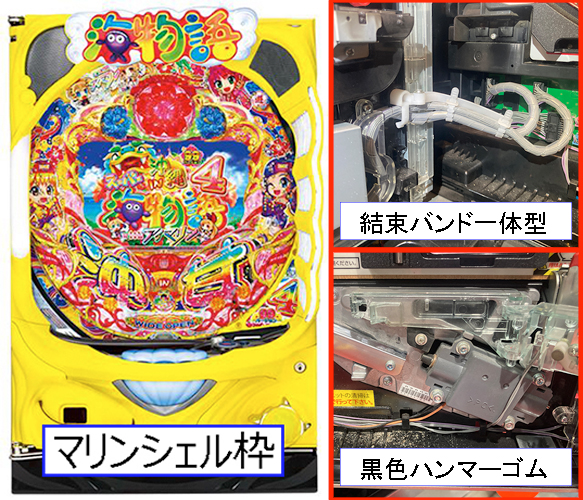 ・上記の3枠では、コードロッドには“インシュロックを使用して固定” するものと“結束バンドが一体化” しているものがあり、発射装置には“黒色の打球ハンマーゴムを使用”しているものと“打球ハンマーゴムがない(一体化)”しているものがあります。