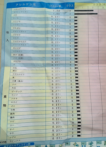 前回検査を行ったアレルギー結果を取りに耳鼻咽喉科へ